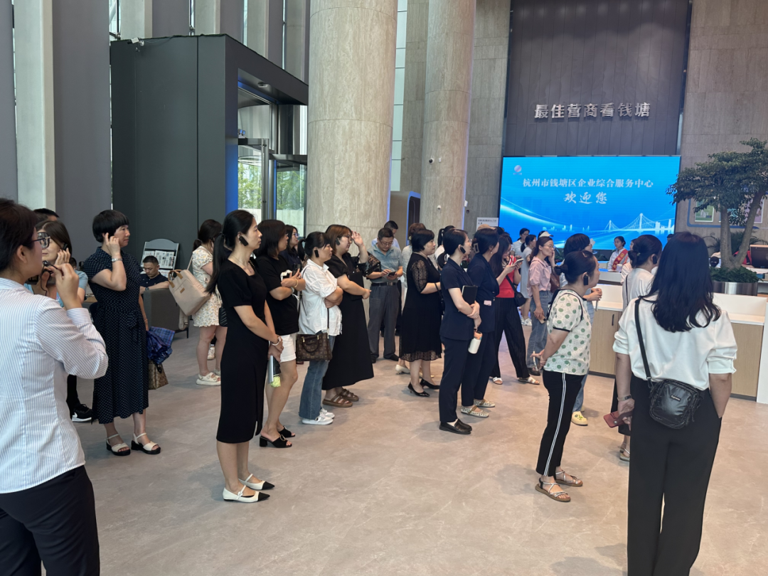 活动当天,商会会员先后来到钱塘民营经济人士之家、钱塘区企业综合服务中心进行参观学习。据了解,钱塘区企业综合服务中心位于金沙大道600号东楼,是钱塘打造营商环境升级版,实现以增值服务降低成本、增加效益、强化功能、赋能发展的重要载体。