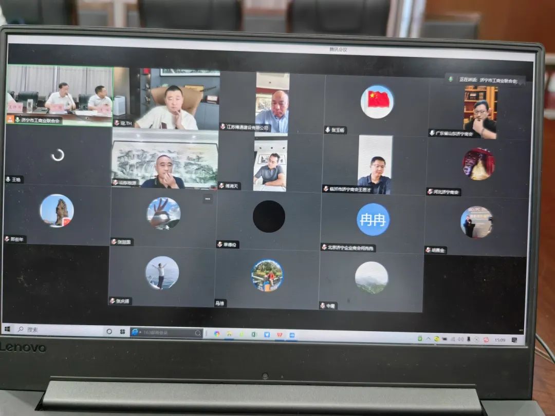 北京济宁企业商会会长、北京圣安平泰企业管理集团董事长张延国;上海市山东济宁商会会长、上海远南投资管理有限公司董事长张玉扬;广东省山东济宁商会会长、复大国际控股集团董事长曹景秋;深圳市山东济宁商会会长、爱华国际教育科技集团董事长张庆阔;浙江省济宁商会会长、温州市银座鞋业有限公司总经理寇天虎;南京市济宁商会会长、南京中福昊建筑工程有限公司总经理傅清天;徐州市济宁商会会长、江苏博通建设有限公司董事长李传文;青岛市济宁商会会长商会党支部书记杨贤民;烟台市济宁商会会长、润洋环保技术有限公司董事长刘德付;临沂市济宁商会会长、山东利群消防工程有限公司总经理王思才;河北省山东商会济宁分会副会长、河北伟航建筑装饰工程有限公司总经理彭兆伟;苏州市山东商会济宁分会监事长、上海汇诚知识产权代理有限公司董事长宰德伦;济南市济宁商会秘书长、山东郡望工程机械有限公司总经理朱滨等先后介绍了商会2023年以来开展招商工作情况和下步工作打算。