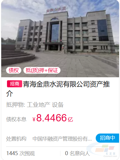 近日,中国华融资产管理股份有限公司青海省分公司发布青海金鼎水泥有限公司资产推介。