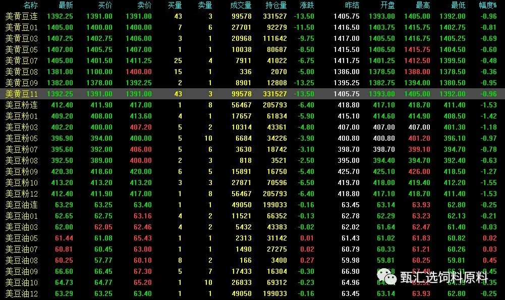 一、美豆跌0.96%,美豆粕跌1.53%,美豆油跌0.25%