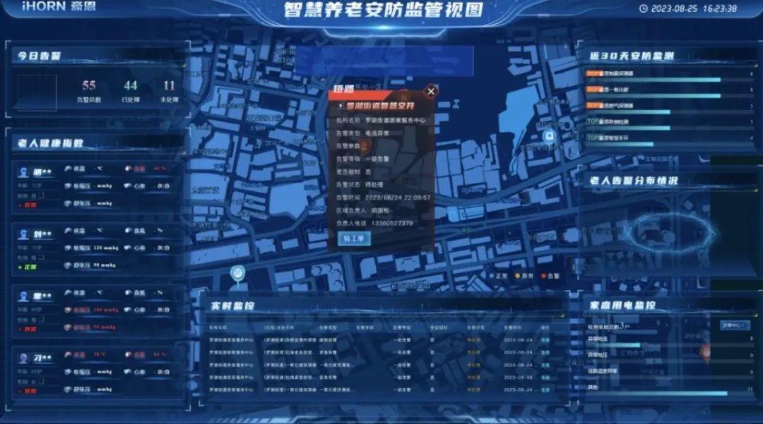 豪恩智慧养老综合管理平台建立“全面服务+专业评估+政府监管”三位一体的养老服务保障体系,提供了实时、便捷、高效、低成本的养老服务平台。