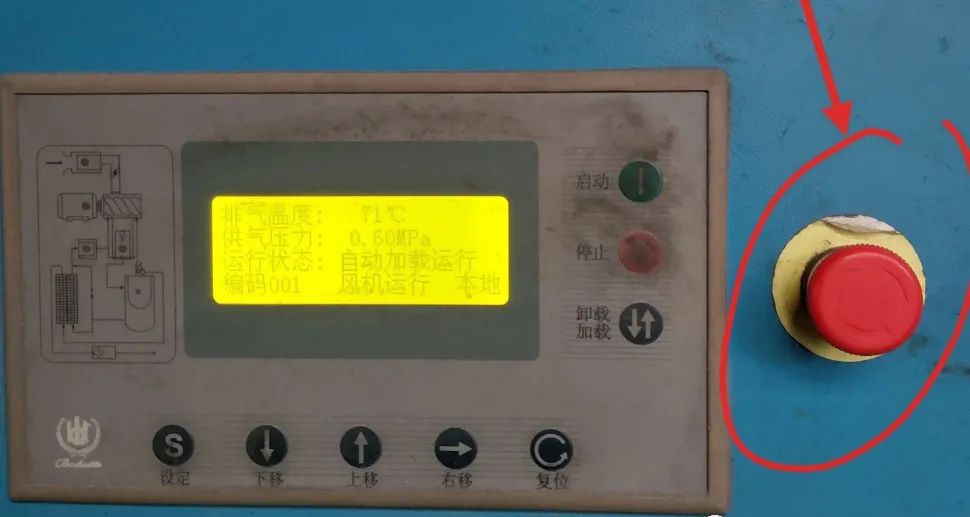 2、空压机长时间闲置。启动显示时请复位急停,但复位不起作用。可判断急停开关断开或急停控制线接触不良。更换或修理急停开关。