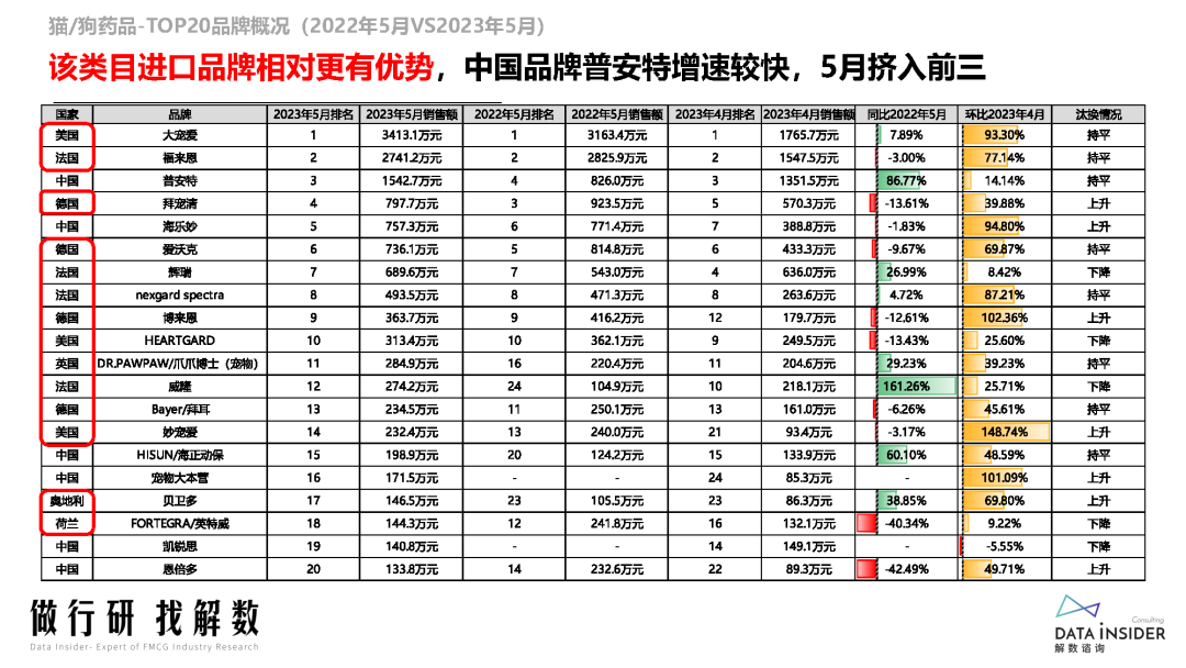 摘要:报告显示,猫狗药品子行业中,除了猫驱虫药和猫眼、耳、口、鼻疾病药品,其他子行业的销售额都呈现出上涨趋势。狗眼耳口鼻药品和狗消化道疾病药品是当前市场的一大热点。
