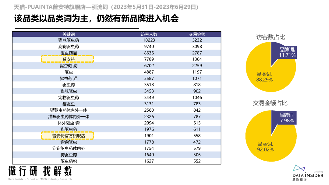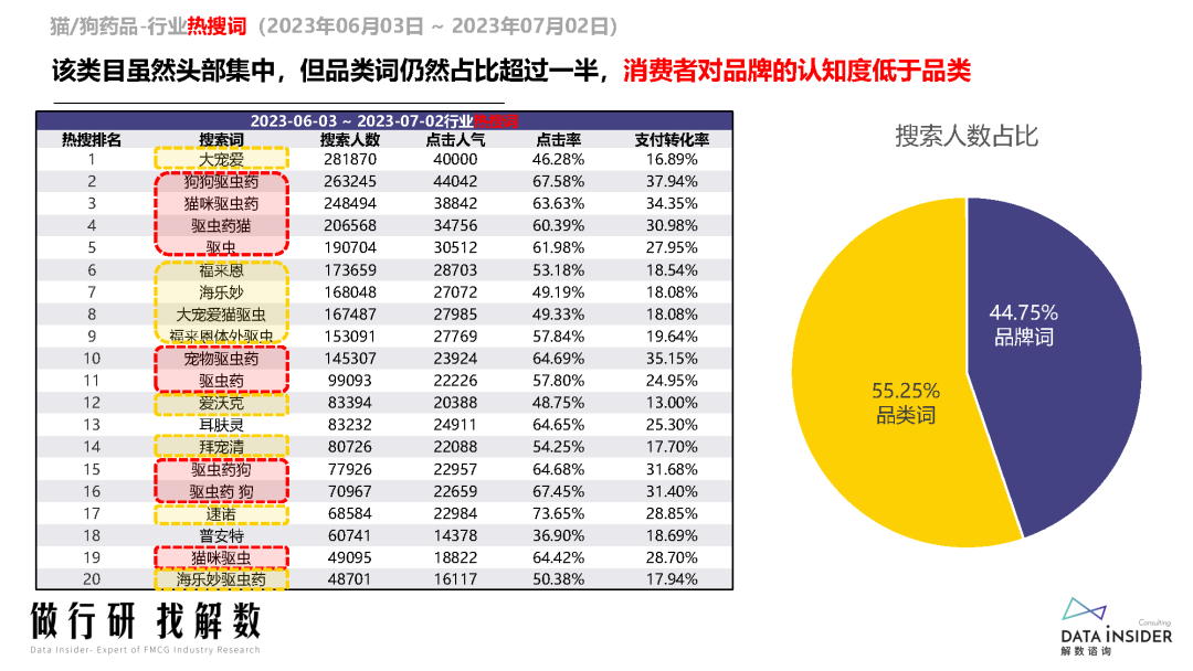 狗药品市场的销售额和访客量增长速度远高于猫药品市场,尤其是狗眼耳口鼻药品和狗消化道疾病药品等热门领域。