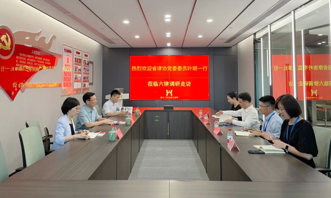 为了进一步提高新时代律师行业党建工作水平,加强对律师事务所党建工作的分类指导,根据《浙江省律师行业党委委员联系基层党建工作机制》的制度安排,8月23日下午,浙江省律师行业党委委员、省律协监事长叶明到六律所调研指导党建工作。杭州市律协副秘书长、党委办主任刘晴晴,浙江宏昊律师事务所副主任曾清陪同调研。杭州市律协副会长、浙江六律律师事务所主任周建平主持座谈会,党支部书记曹文,副主任胡斌、王义热情接待并参加座谈。