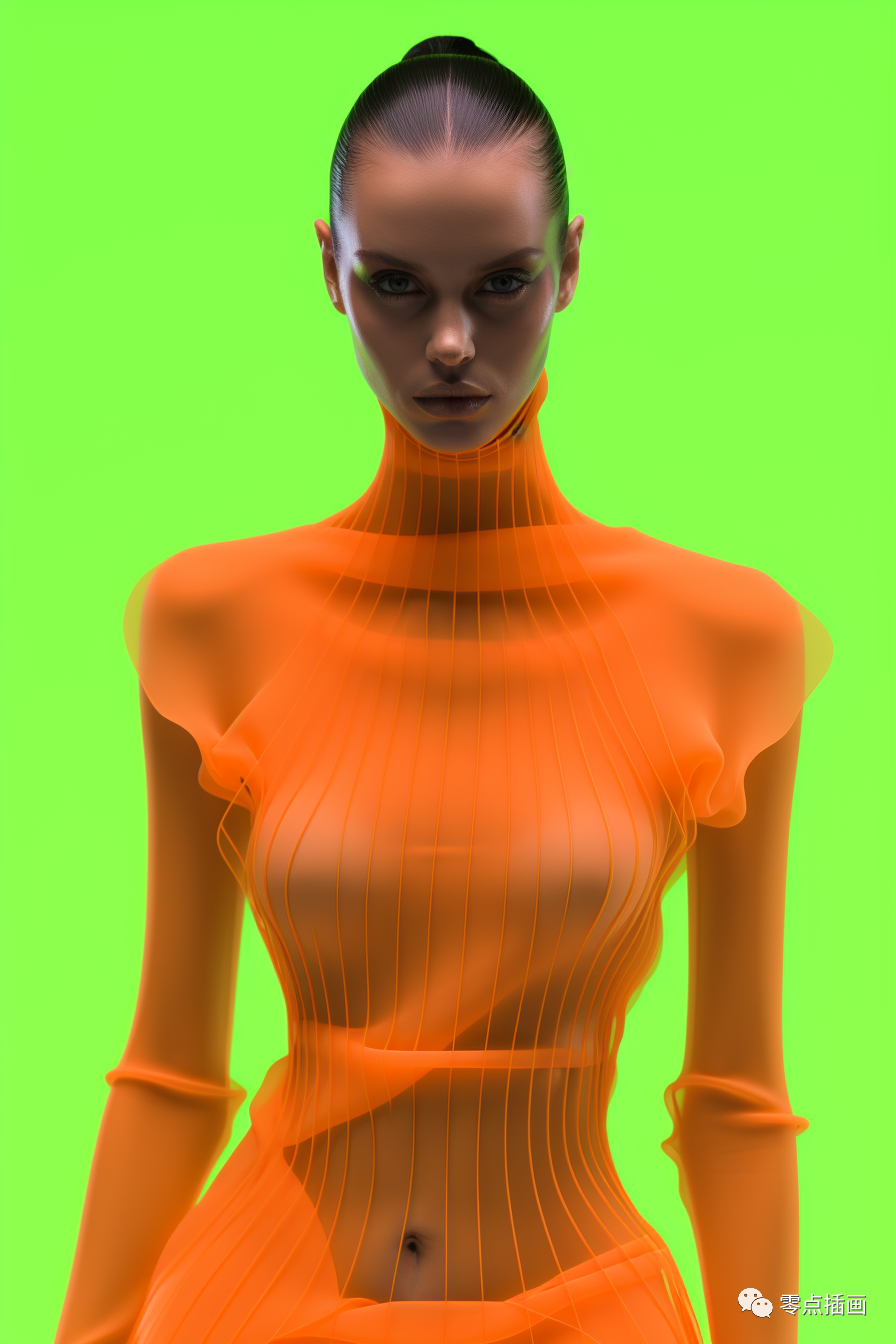<https://s.mj.run/N-aQ3Wk9ycU>, a woman with an orange dress holding a handbag in glamour pose, in the style of distorted and elongated forms, daz3d, transparent/translucent medium, detailed costumes, charles spencelayh, minimalist: spare simplicity, neon colors, lime background --style raw --ar 2:3