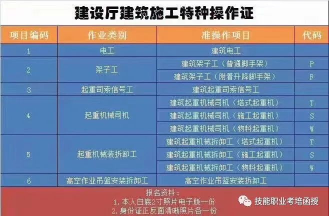 建筑电工,建筑架子工,施工升降机,建筑起重机械司机,司索信号工,高空作业吊篮