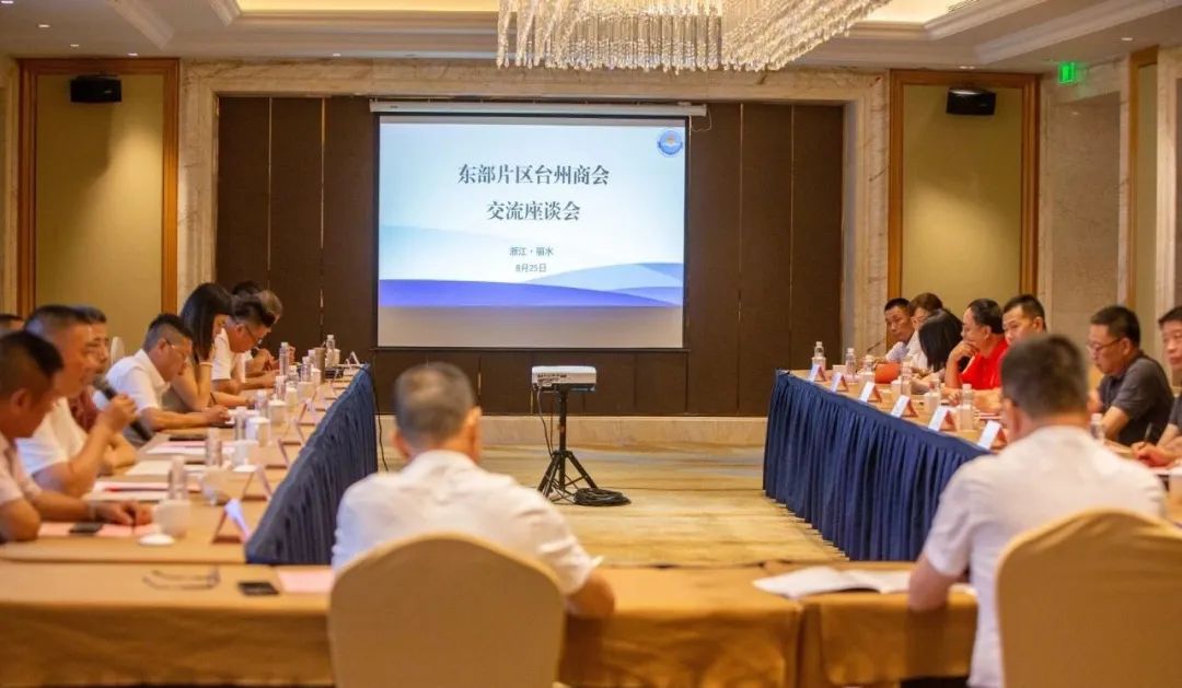 8月25日下午,东部片区台州商会座谈交流会在丽水召开。台州市委统战部副部长、市工商联党组书记林福江,台州市工商联党组成员、副主席卢建武,东部片区18家商会会长参加此次座谈会。