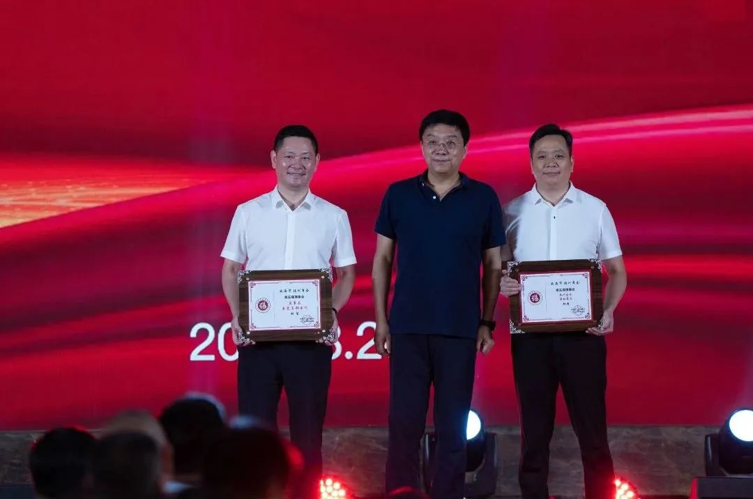 邓勇为执行会长兼秘书长郑群、党支部书记兼监事长林坚授牌