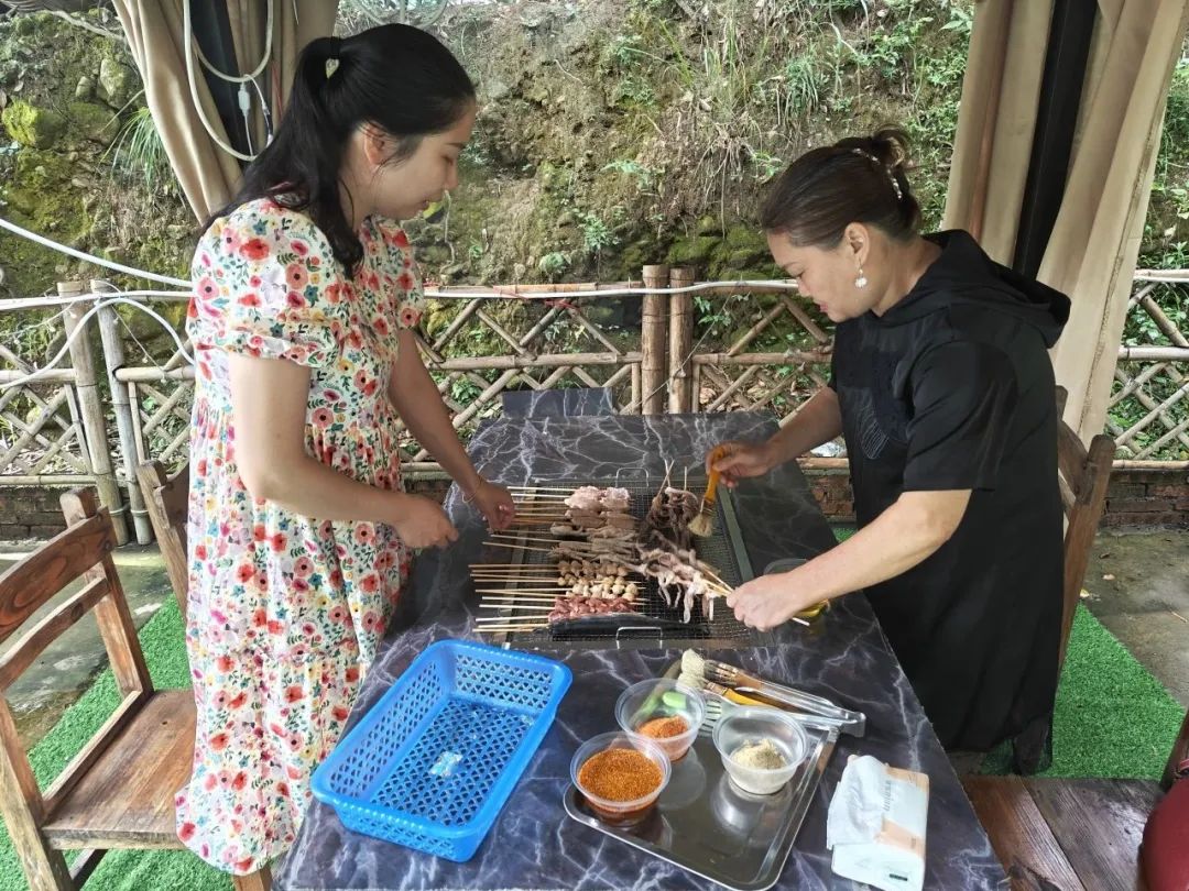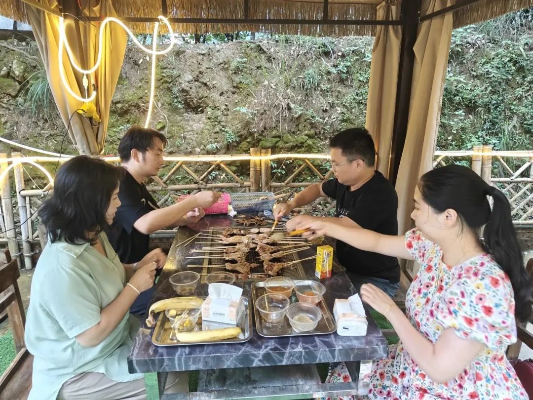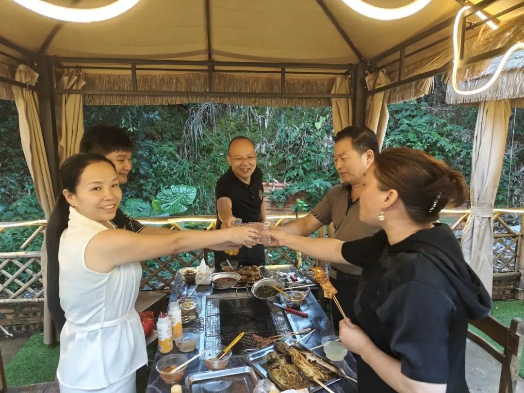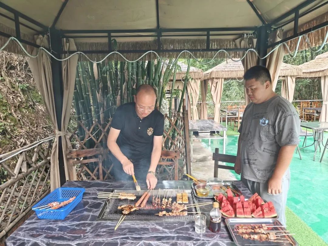 在联谊活动现场,烧烤区热气腾腾,香气扑鼻。会员邹瑜为大家带来了乳源特色糍粑等本地食品,再加上现场新鲜诱人的烤串,让人食指大动。大家举杯共饮,乐享美食,欢声笑语随着缕缕炊烟在空中萦绕......
