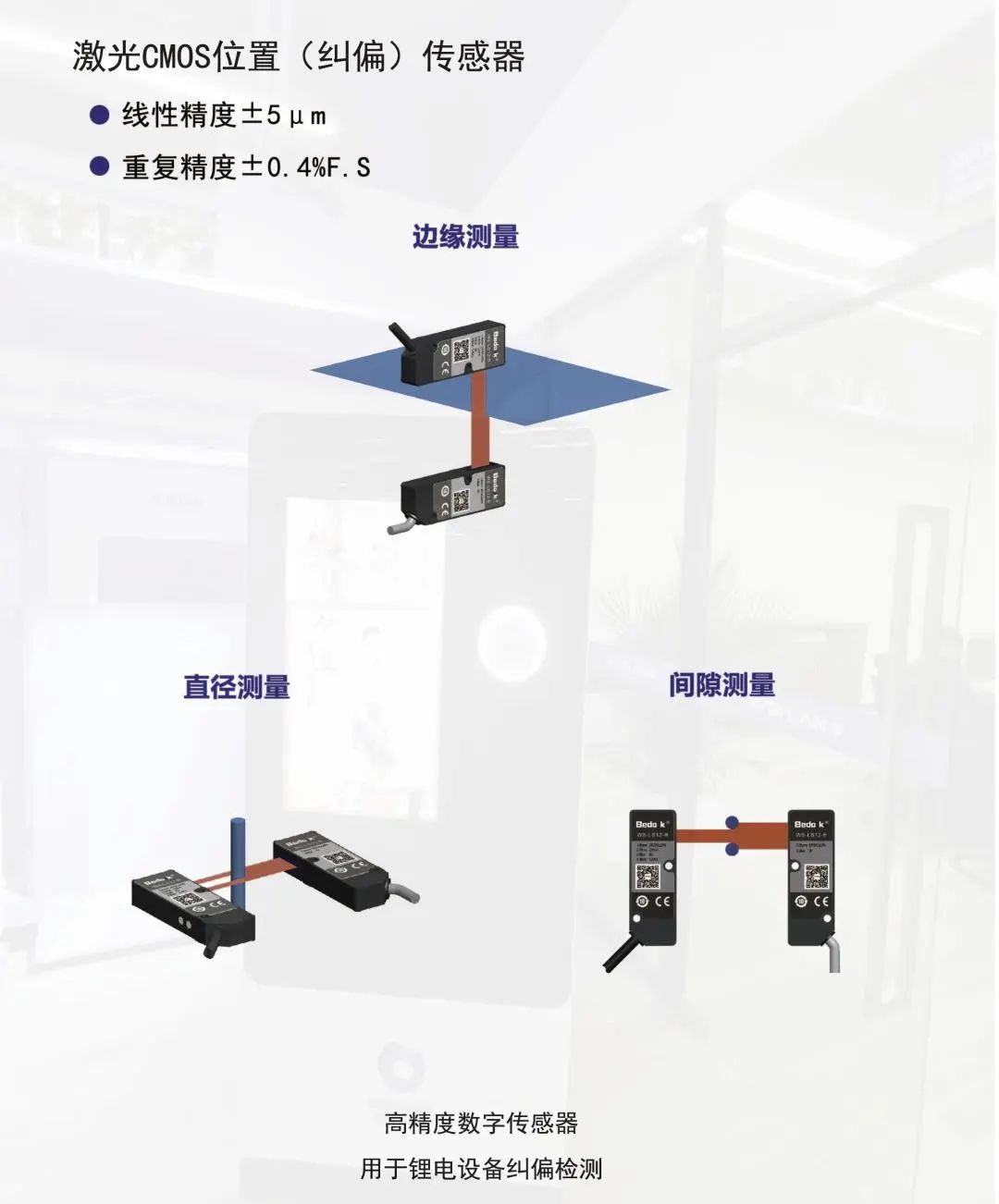激光CMOS纠偏传感器是采用半导体激光为光源,高精度CMOS器件为接收部件的纠偏传感器,其测量精度可达微米级,是锂电等高端行业卷材设备的最佳纠偏传感器。