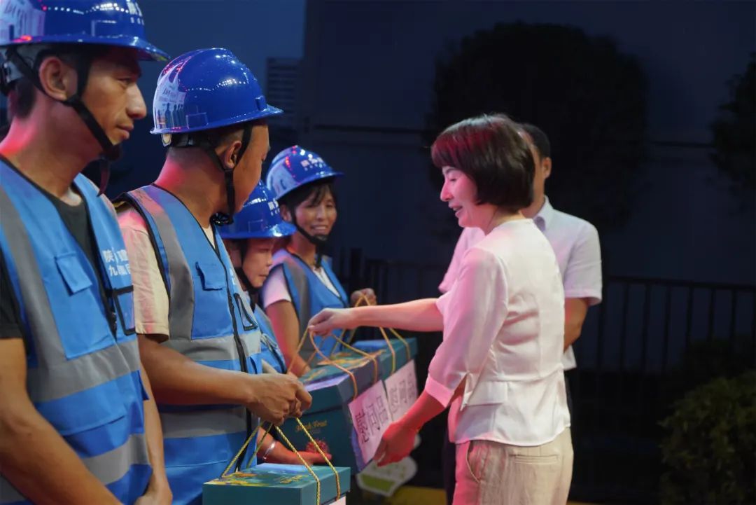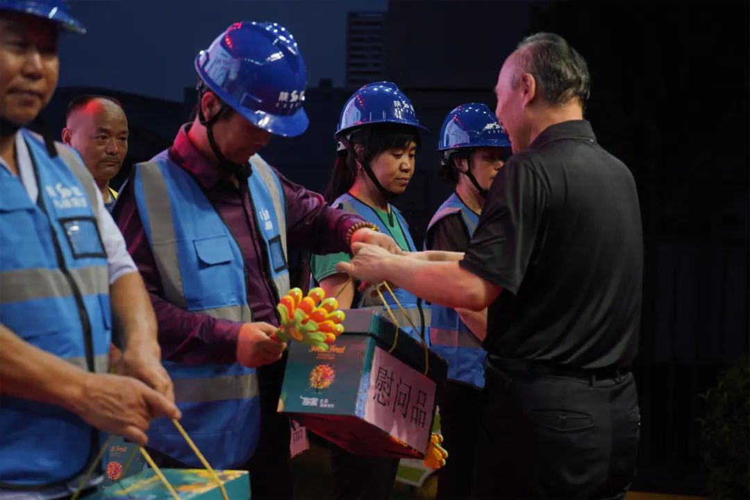 在一线职工慰问环节中,与会领导和嘉宾为一线建设者代表发放了防暑降温慰问品。
