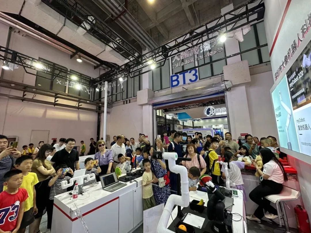 这些各具特色的机器人产品使得大象机器人的展位成为展会上的一大亮点,引来无数观众纷纷围绕我们的展台,对产品产品表现出了浓厚的兴趣和喜爱。