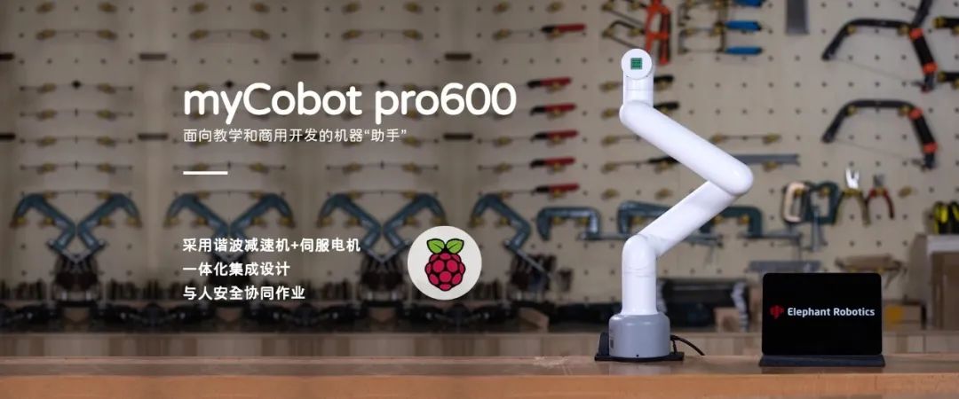 myCobot Pro 600的设计初衷是向大家提供一款可以重复劳动的机器,采用树莓派微处理器,内嵌roboFlow可视化编程软件,是大象机器人面向教学及商用开发的机器“助手”。