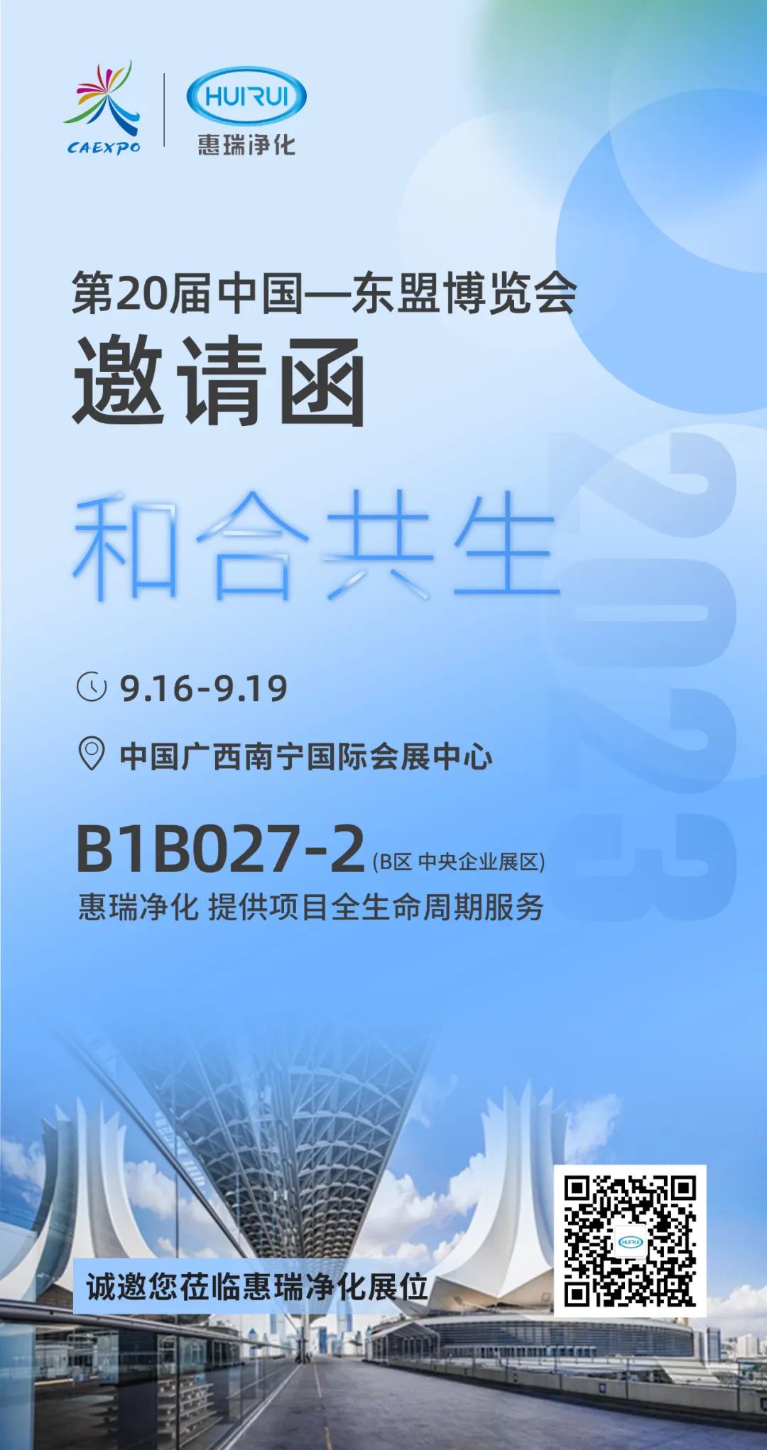 2023年9月16-19日,第20届中国—东盟博览会将于中国广西南宁国际会展中心举办,惠瑞净化诚邀新老客户莅临B1展厅B1B027-2号展位参观指导。