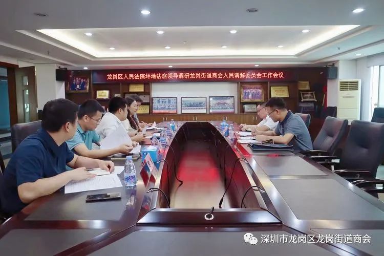 ▲龙岗区人民法院坪地法庭调研指导商会调解工作