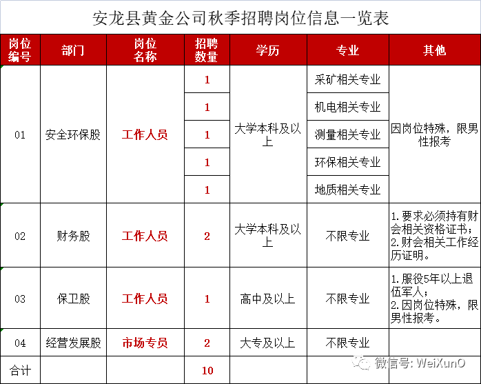 具体招聘单位、岗位、人数、专业及岗位条件等详见《安龙县黄金公司秋季招聘岗位信息一览表》(附件1)。