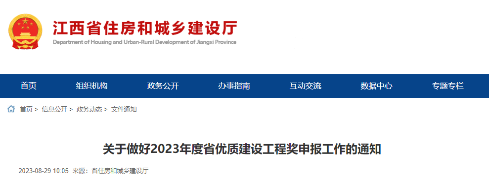根据《江西省优质建设工程奖评选办法》(赣建字〔2017〕3号)(以下简称《评选办法》)有关规定,现就2023年度省优质建设工程奖申报有关工作通知如下。