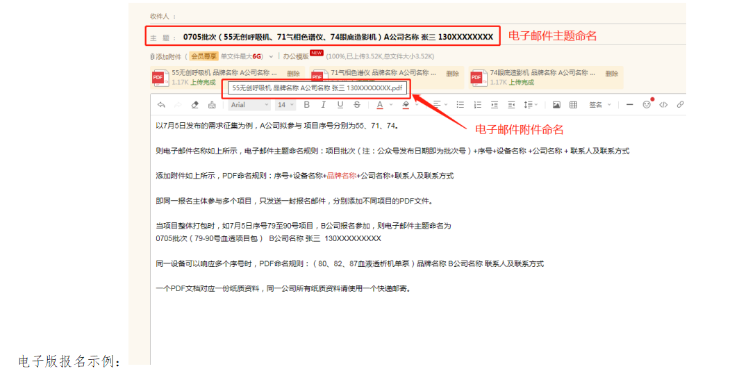 1、请先将电子版(PDF)命名为“投递项目名称(含序号+所投设备名称)+公司名称+联系方式”并发至18608311999@wo.cn。(若所投项目为打包项目时,需按包全响应)
