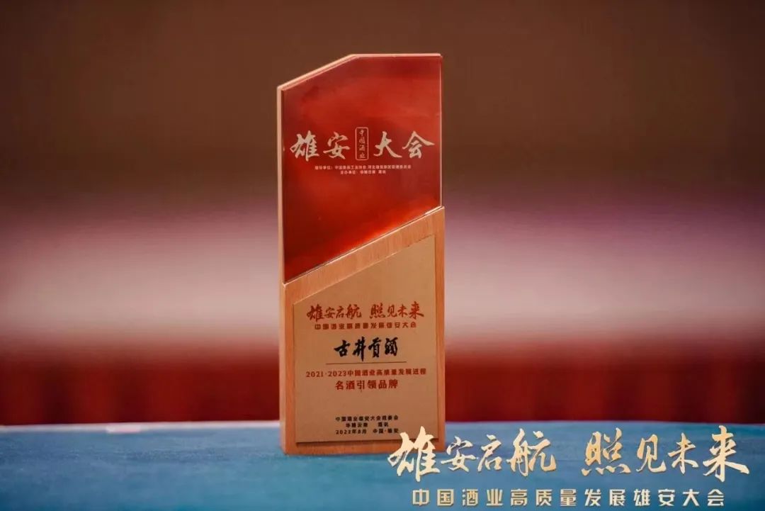 除了展厅吸引众多经销商外,在8月27日下午举办的“雄安启航 照见未来——中国酒业高质量发展雄安大会”活动现场,古井贡酒还斩获“2021-2023中国酒业高质量发展进程名酒引领品牌”。