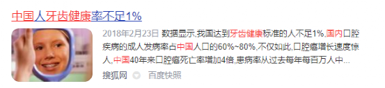 普通人有必要使用冲牙器吗?我认为是非常有必要的,因为根据我国相关权威机构报导我国国人牙齿健康率严重的不足1%(见下图),当我看到这组数据的时候整个人都是震惊的,这都21世纪了怎么居然还会有这么多人不爱护自己的口腔健康,对于此