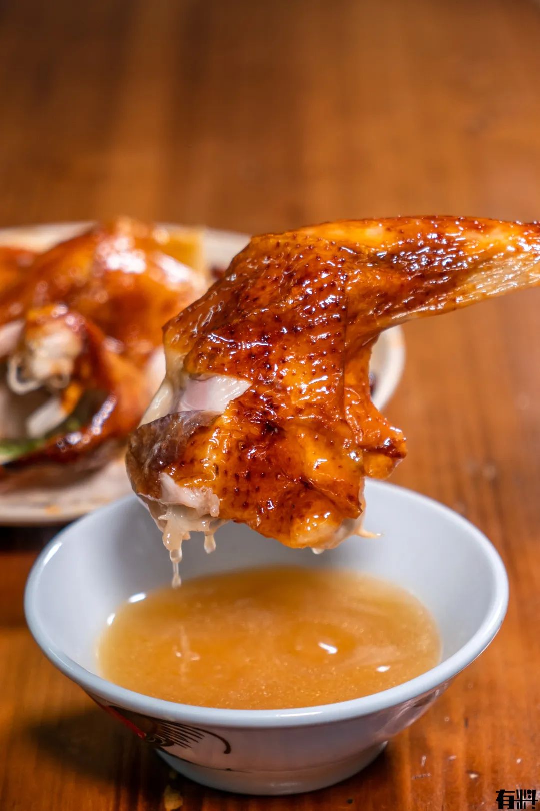 烧鸡的汁水一点也不能浪费,一整只鸡腿浸入里面,挂满汁水的肉肉更加入味,简直是锦上添花!