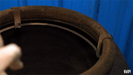 烧鸡用的是传统的瓦缸炉,一操作温度瞬间飙升~烤制期间还要不断帮鸡翻身,看成色,要等上近十五小时才能见客!