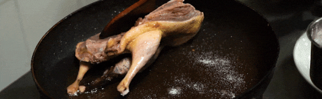 先将鸭子用蒸炉小火慢慢焐熟,再煎炸焦黄,用盐继续调味、调色,味道醇厚鲜美。