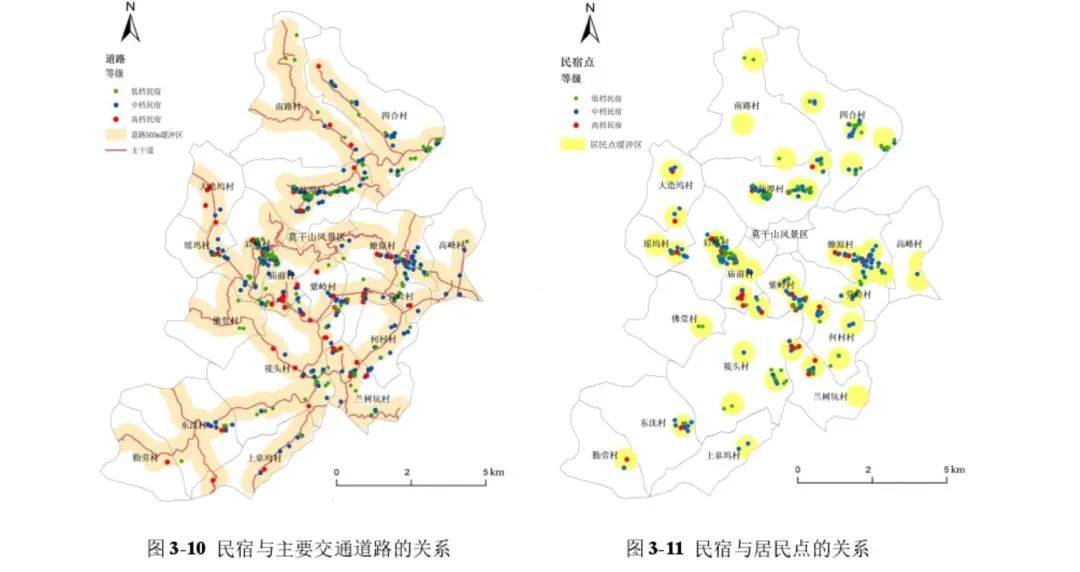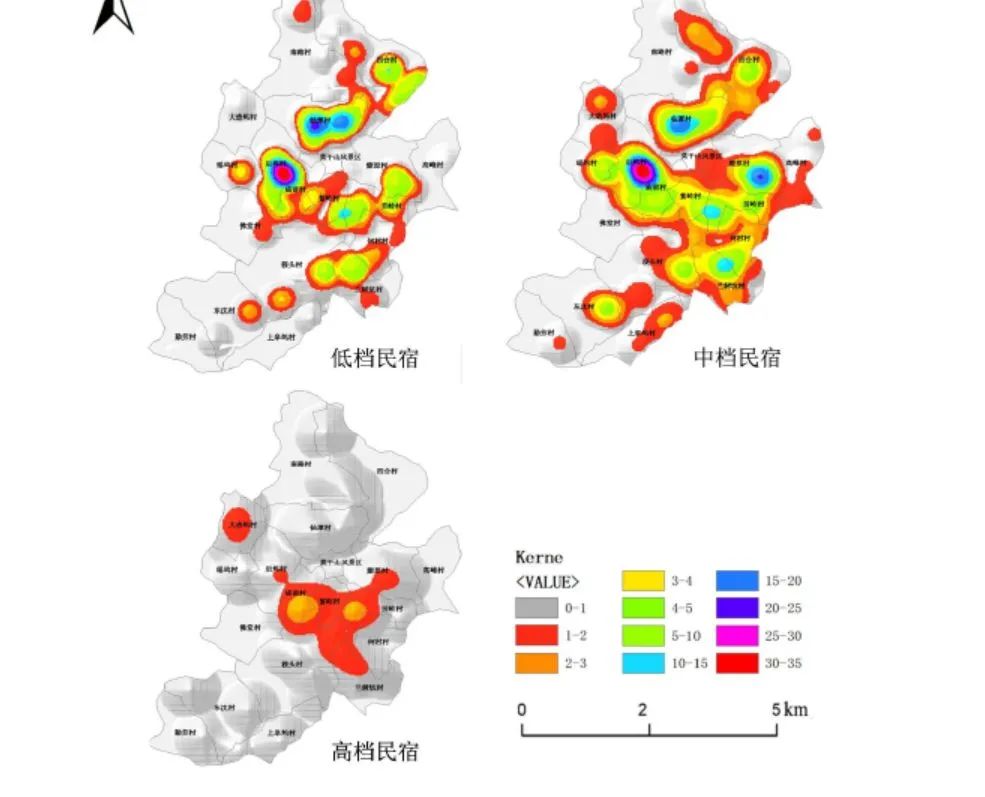 侧面反映了不同等级民宿具有不同的产业功能定位和区位选择偏好。