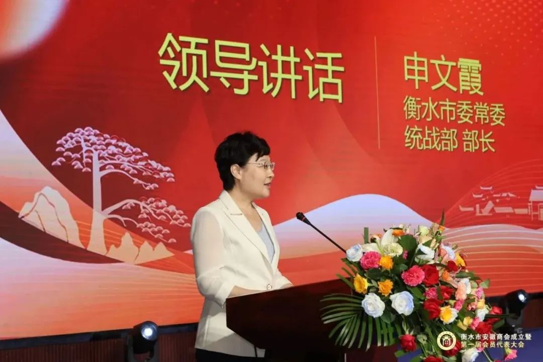 衡水市委常委、统战部长申文霞,安徽国际徽商交流协会高咨委、合肥市政协原主席周富如为衡水市安徽商会揭牌。