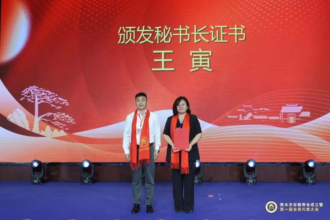 河北省安徽商会马登峰会长为衡水市安徽商会秘书长王寅颁发证书