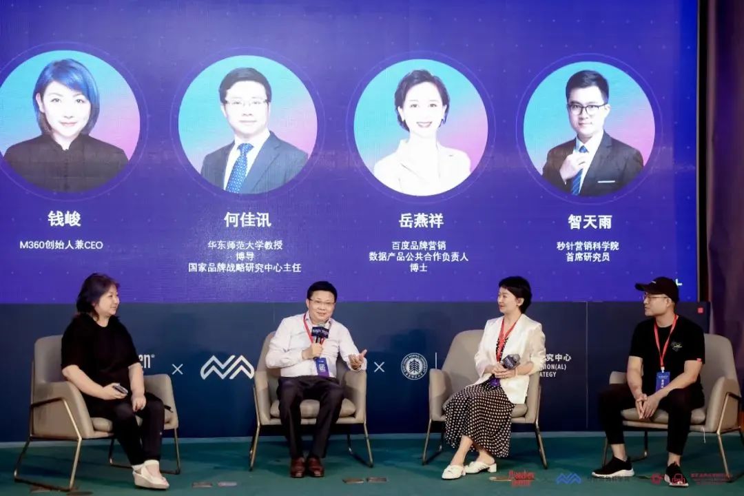 左起:M360创始人兼CEO钱峻、华东师范大学教授、博导,国家品牌战略研究中心主任何佳讯、百度品牌营销数据产品公共合作负责人岳燕祥、秒针营销科学院首席研究员智天雨