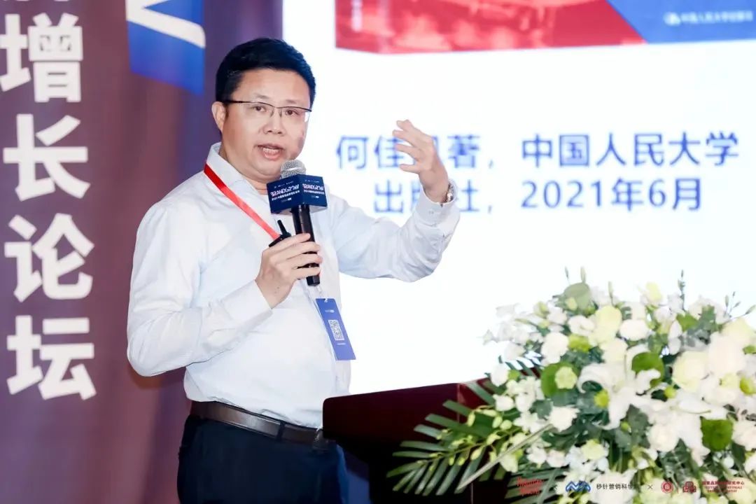 华东师范大学教授、博导,亚欧商学院中方院长、国家品牌战略研究中心主任何佳讯,首先简要介绍了他基于品牌双元本性提出的企业与顾客协同战略理论(教材《战略品牌管理——企业与顾客协同战略》,2021)。通过对BrandGrow最具增长潜力新锐品牌TOP100榜单上榜企业数据的再分析,印证了企业与顾客协同战略的重要性,也表明在品牌力评价上,把内生与外生增长力结合起来的科学性。理论与实践的契合表明新锐品牌发展的关键即是企业与顾客协同战略。