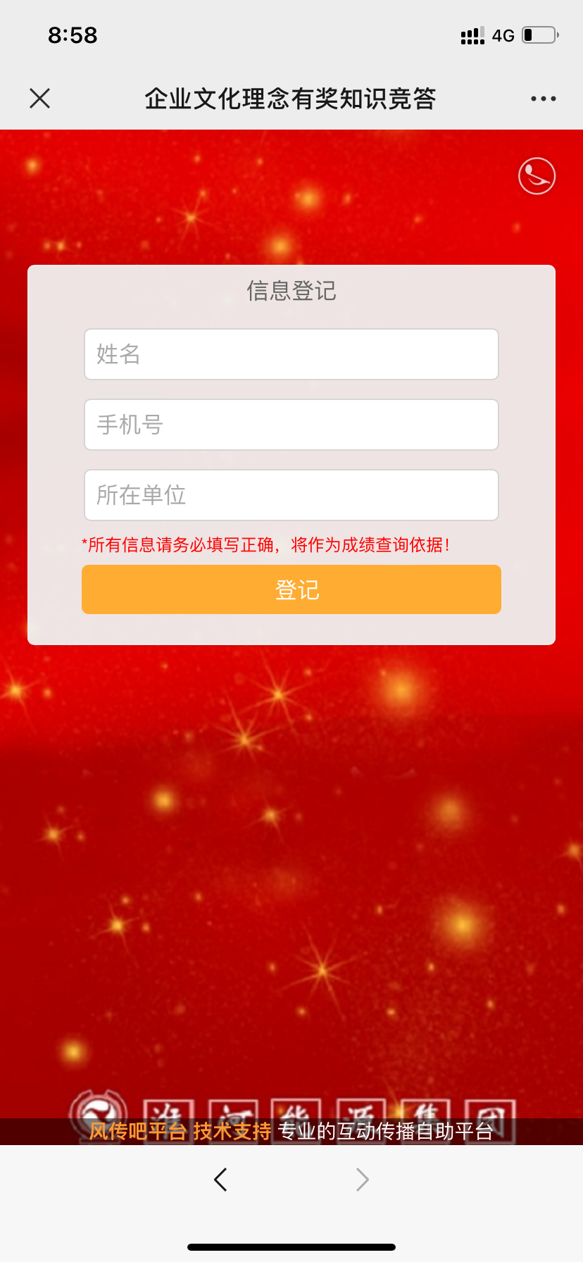 2. 参赛者必须按要求输入:真实姓名和真实有效的手机号码否则无法答题。