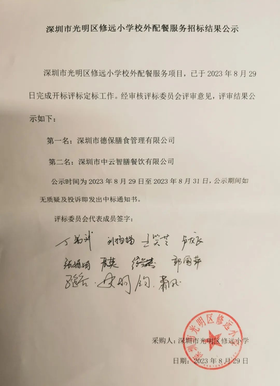 一、项目名称:深圳市光明区修远小学学生校外配餐服务
