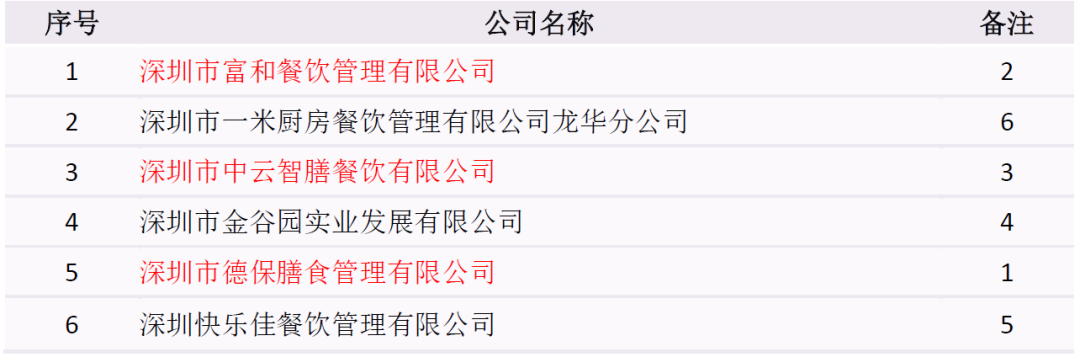 注:标红为综合评分排名前三进入实地考察环节的配餐企业