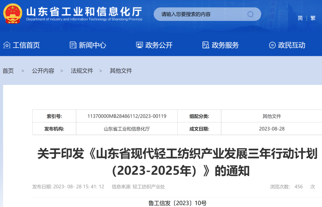 【部门解读】《山东省现代轻工纺织产业发展三年行动计划(2023-2025年)》