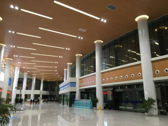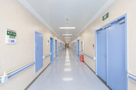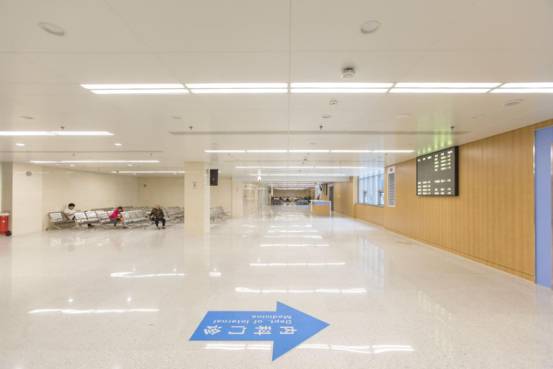 诊室候诊区灯具、喷头、风口、烟感排布精细美观,横成排、竖成行、斜成线,错落有致