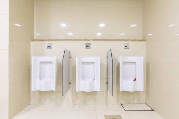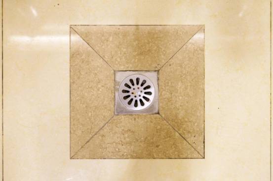 卫生间内洁具安装位置准确,间距相等,高度一致,地漏布置居中。