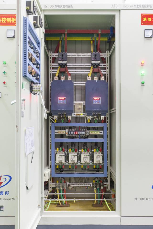 消防泵房内配电柜接地可靠,柜内线缆排布有序,底部绝缘板绝缘,防火封堵到位