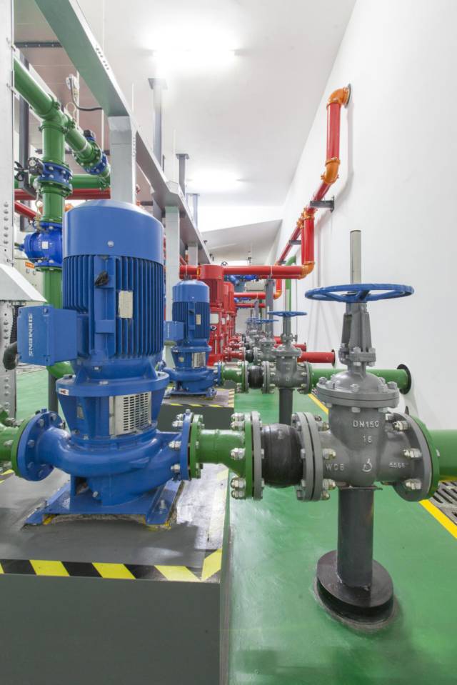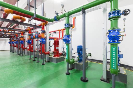 消防泵房设备布局美观,阀门高度一致,油漆涂刷均匀,管道成排成线,标识清晰