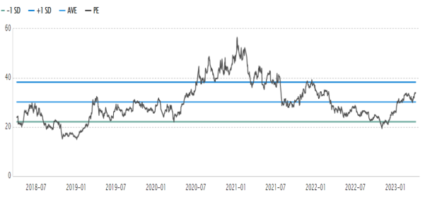 按照2023年31亿的最保守利润,目前估值还不到25倍,PEG也小于1,这个估值在整个白酒行业里都极具吸引力。