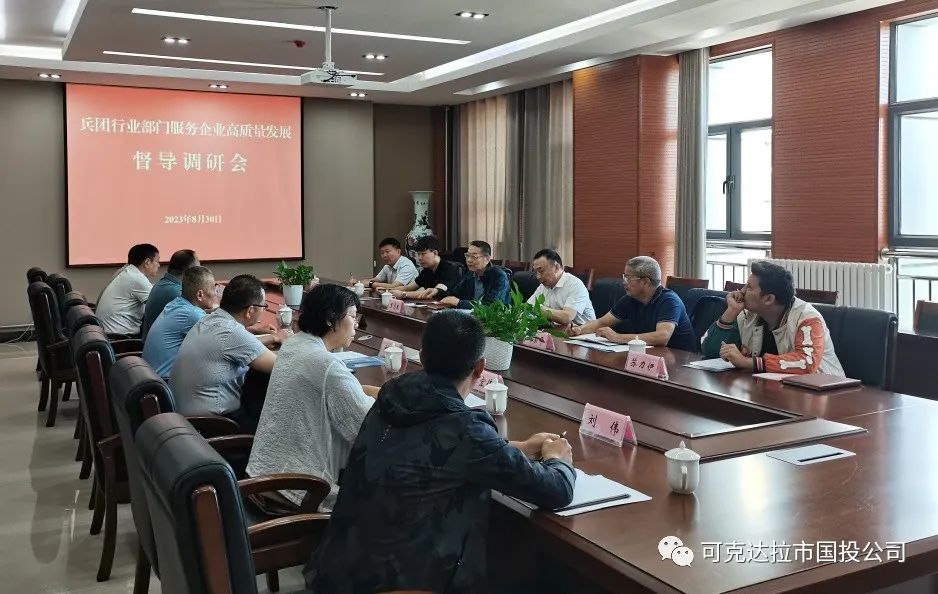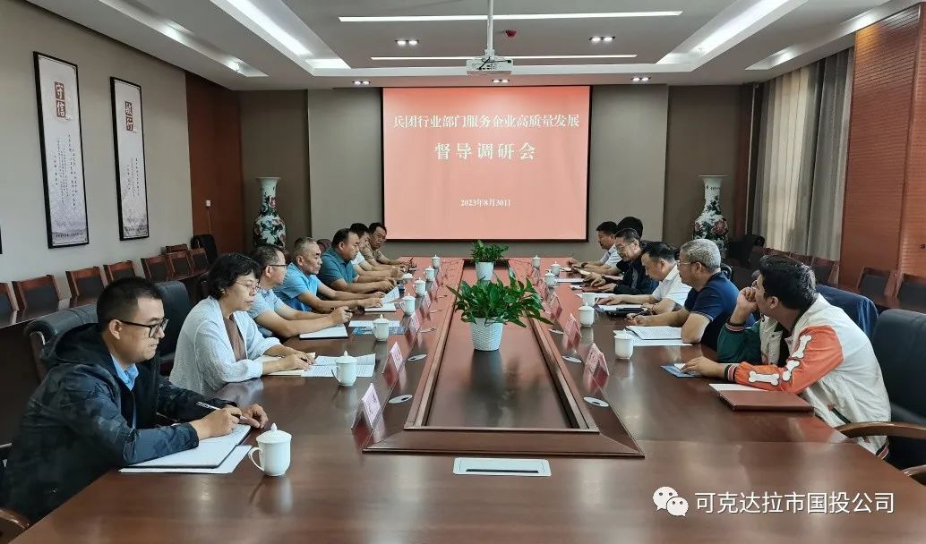 8月30日上午,兵团服务企业高质量发展领导小组办公室副主任丁志民一行赴可克达拉市国投公司督导调研,就师市行业部门服务企业情况、国投公司“十四五”修编规划及发展瓶颈进行座谈交流。
