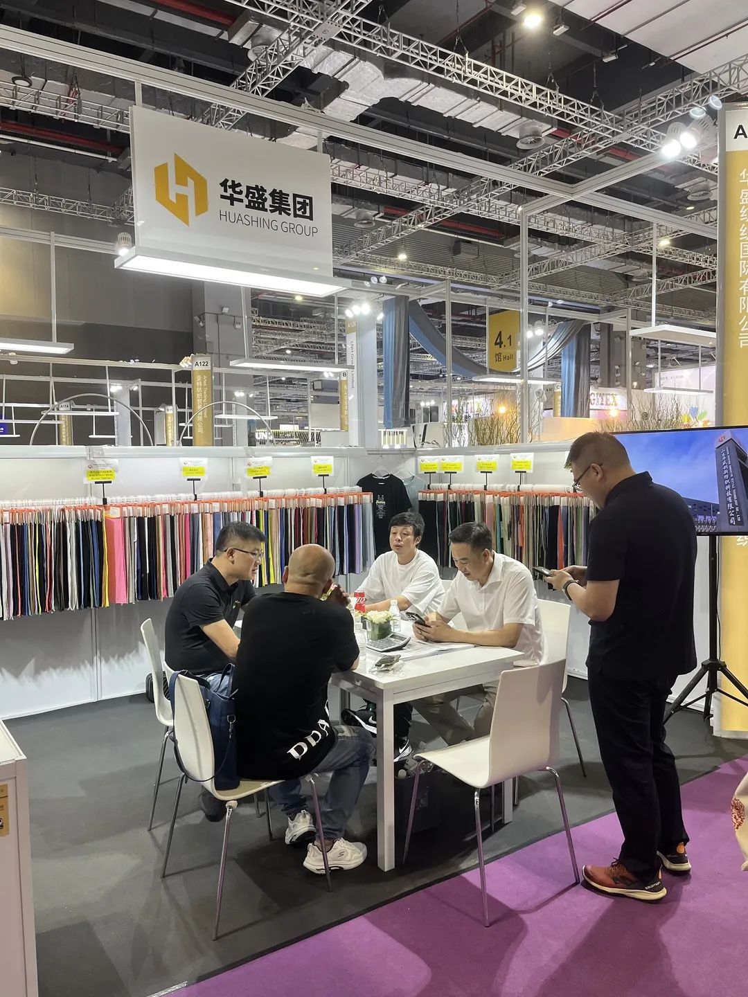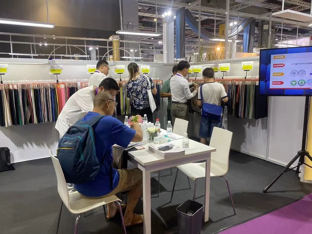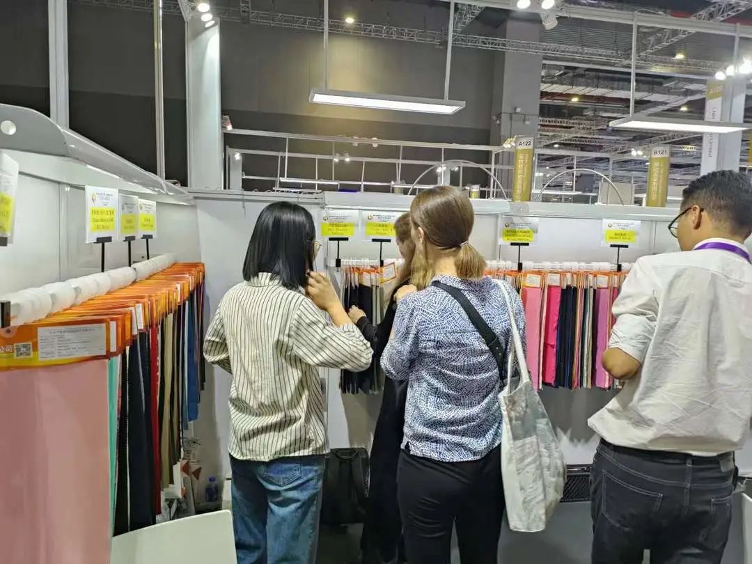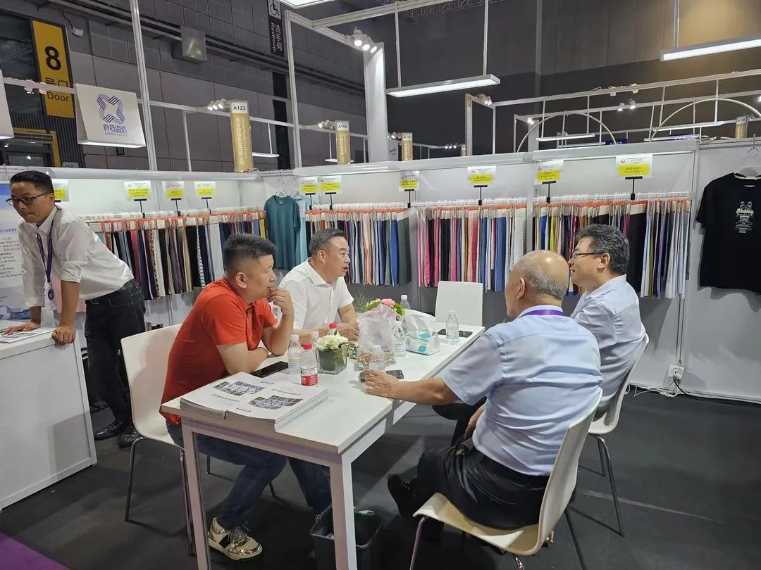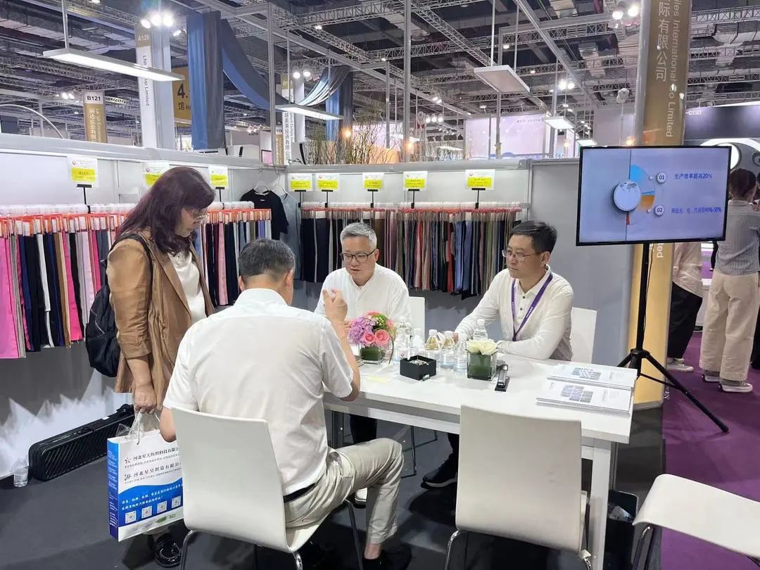 展会期间,山东省纺织服装行业协会副会长蔡小平、东华大学纺织化学与染整工程教授毛志平、中纺资产管理有限公司董事房娜、无棣县经济开发区经贸发展部部长陈青岭等领导分别到我公司展位观展指导。