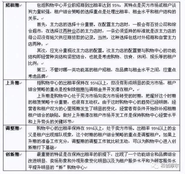 ✦招租期、上升期、调整期和创新期的租户调整策略