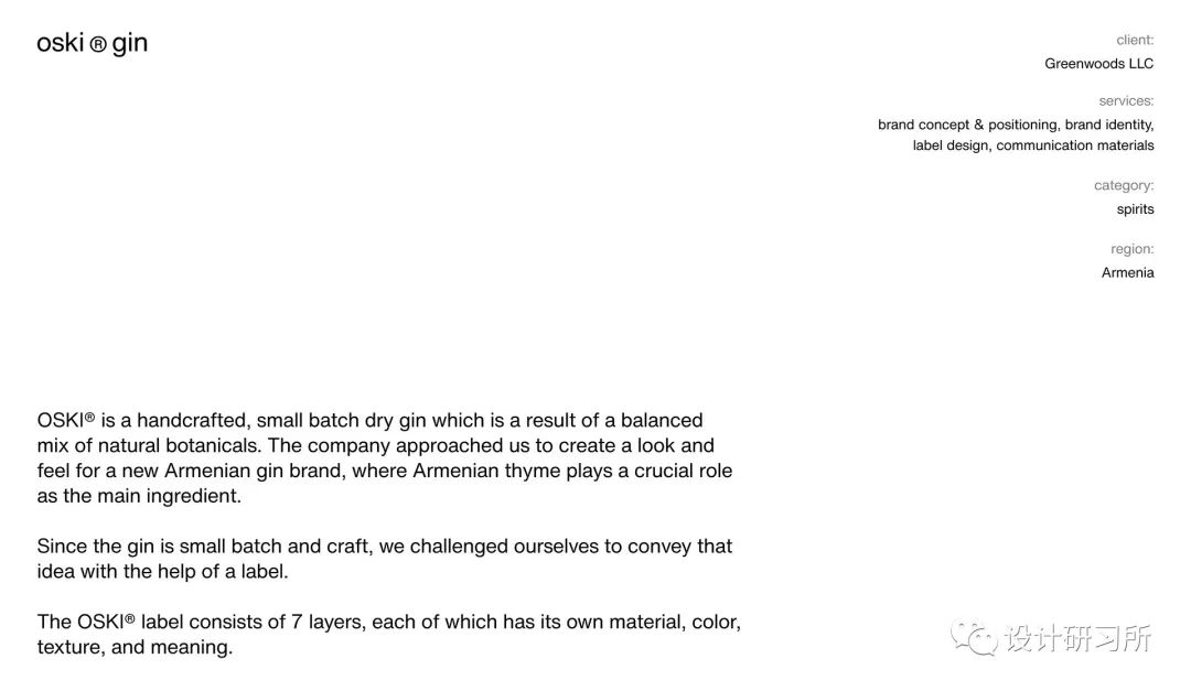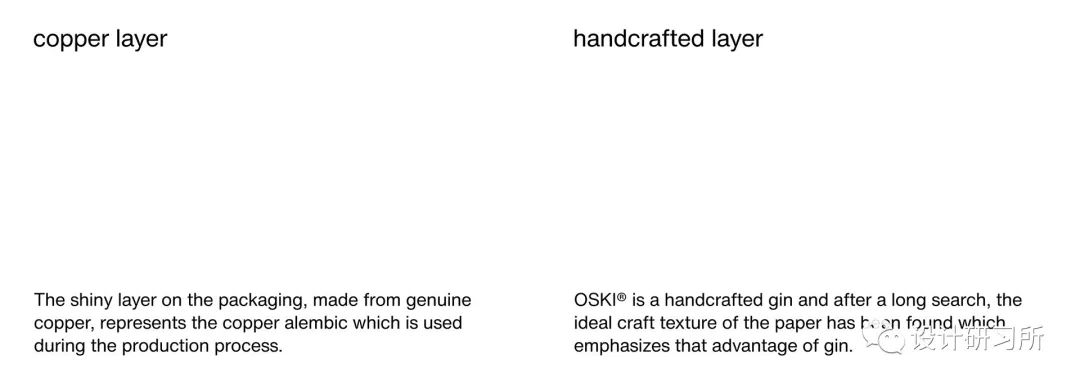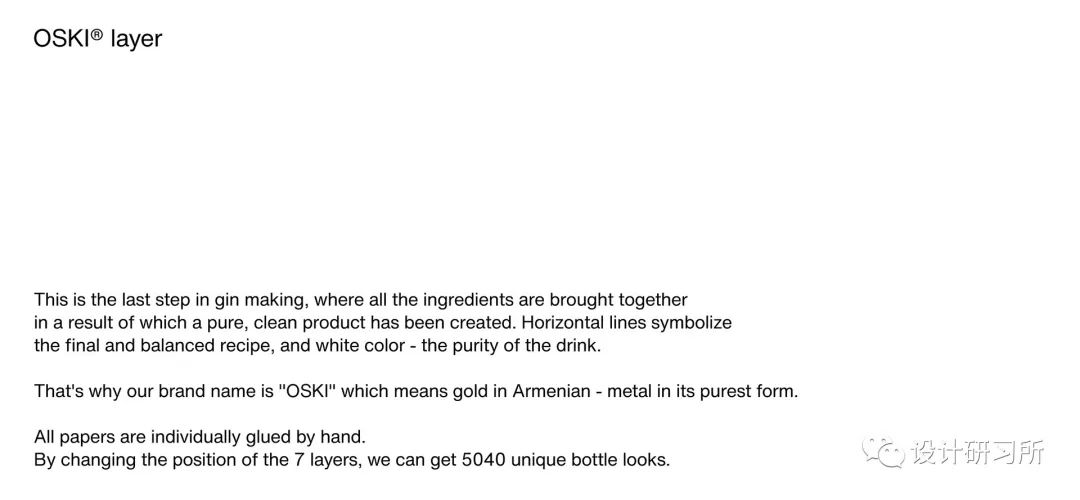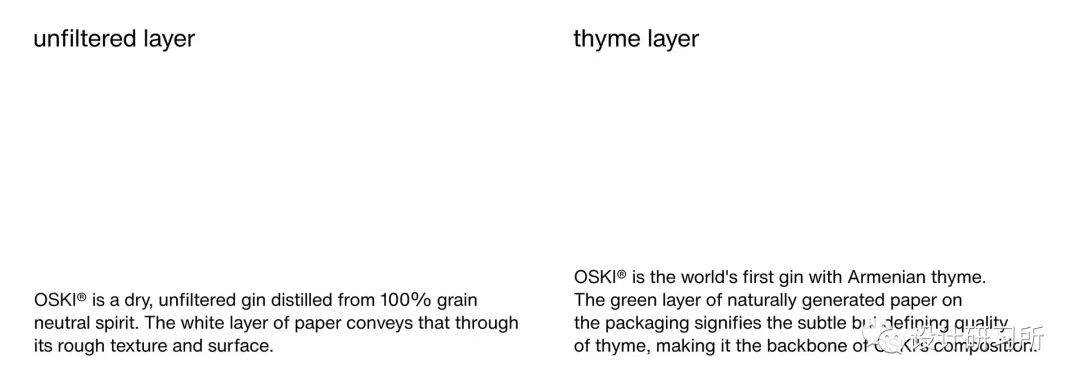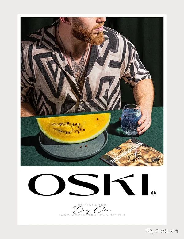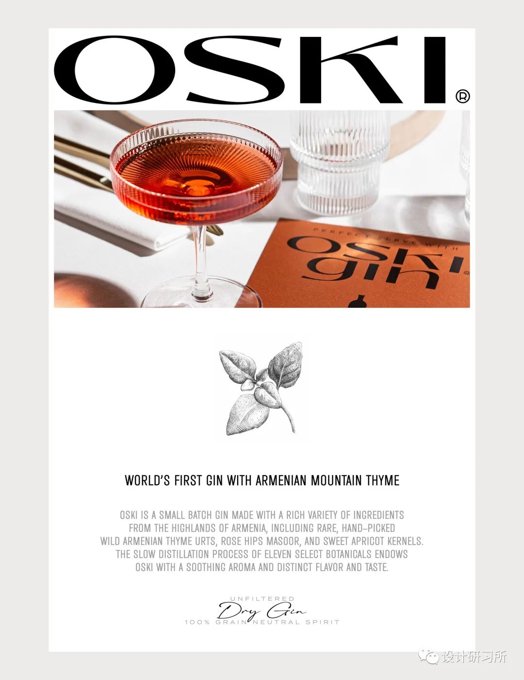 OSKI是一种手工制作的杜松子酒,经过长时间的探索,发现了理想的工艺纹理,强调了杜松子酒的优势。