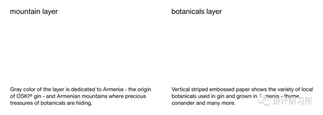 百里香层- OSKI是世界上第一个加入亚美尼亚百里香的杜松子酒。包装上自然生成的绿色纸层象征着百里香的微妙而又明确的品质,使其成为OSKI构图的支柱。
