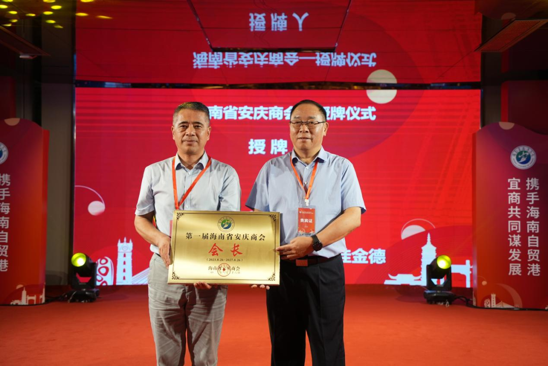 经过投票表决,成立庆典大会上选举产生了海南省安庆商会第一届班子成员并进行了颁牌。安庆宿松籍在琼宜商优秀企业家代表桂金德当选海南省安庆商会首任会长。
