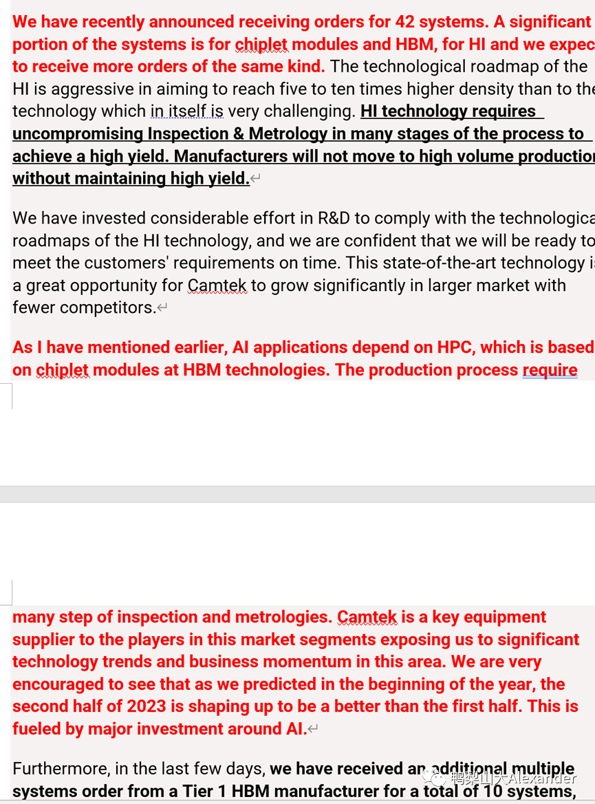 (3)CAMT是HBM量测全球龙头,7月开始批量被加单。