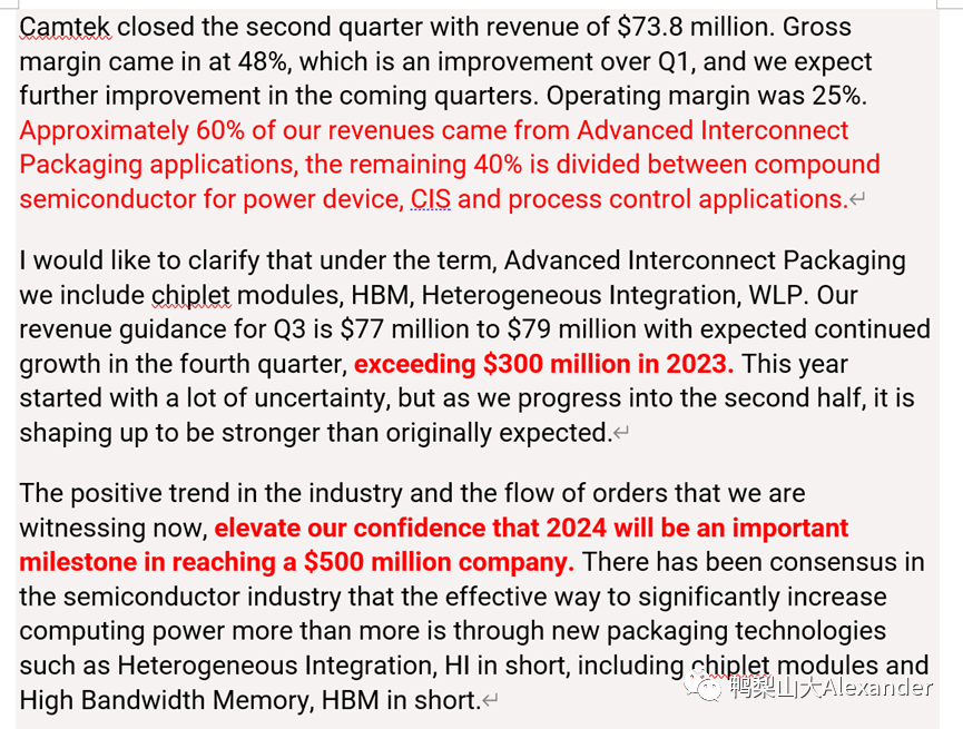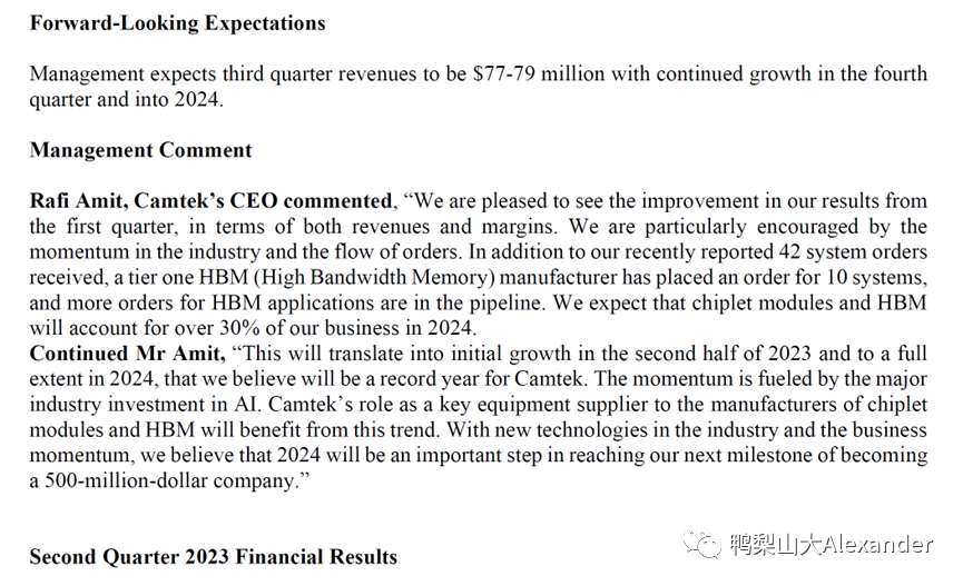 7月31号,2023Q2季报公布,2024年30%的收入来自于chiplet及HBM设备。2024年会是创历史记录的一年。